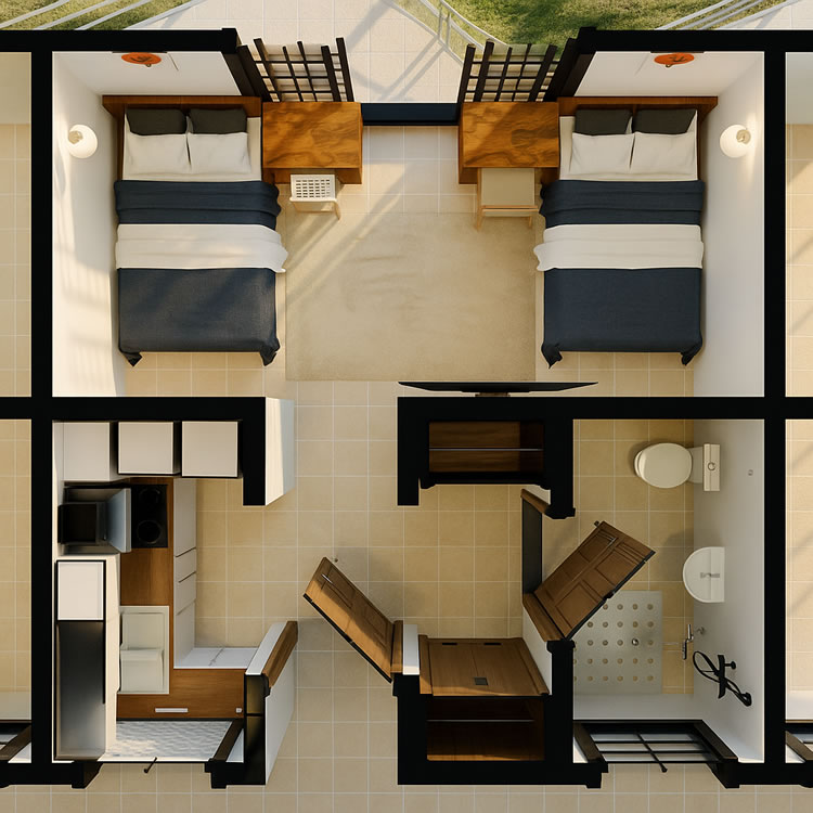 These architectural designs bring our vision to life — combining modern aesthetics with practical layouts and shared amenities that enrich student living. Each rendering reflects our commitment to creating safe, vibrant, and self-sustaining hostels where students can thrive academically and socially.